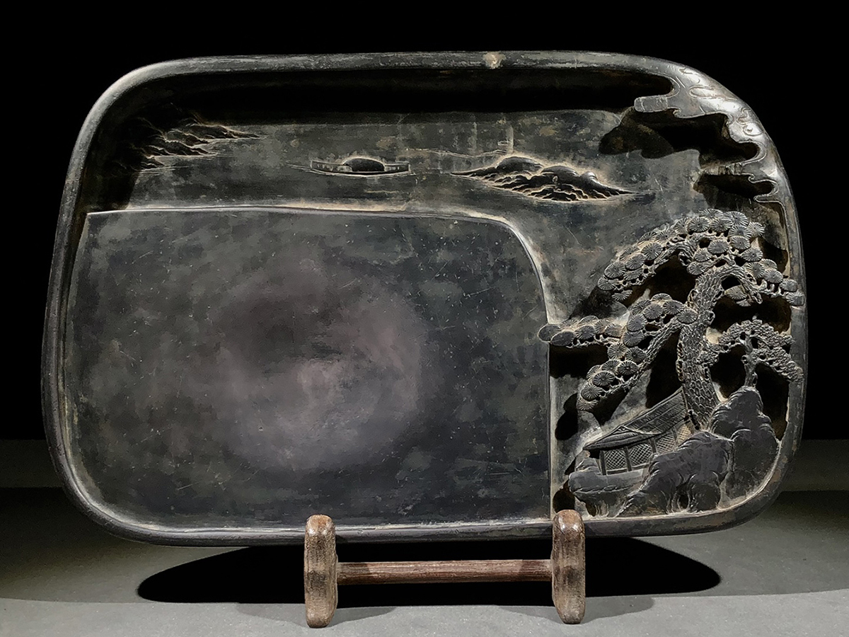 - ▽鴻▽清時代 銭元章銘 端石彫 山水美景紋硯 端渓硯 唐硯 墨寶 書道具 時代物 中国古美術 骨董品