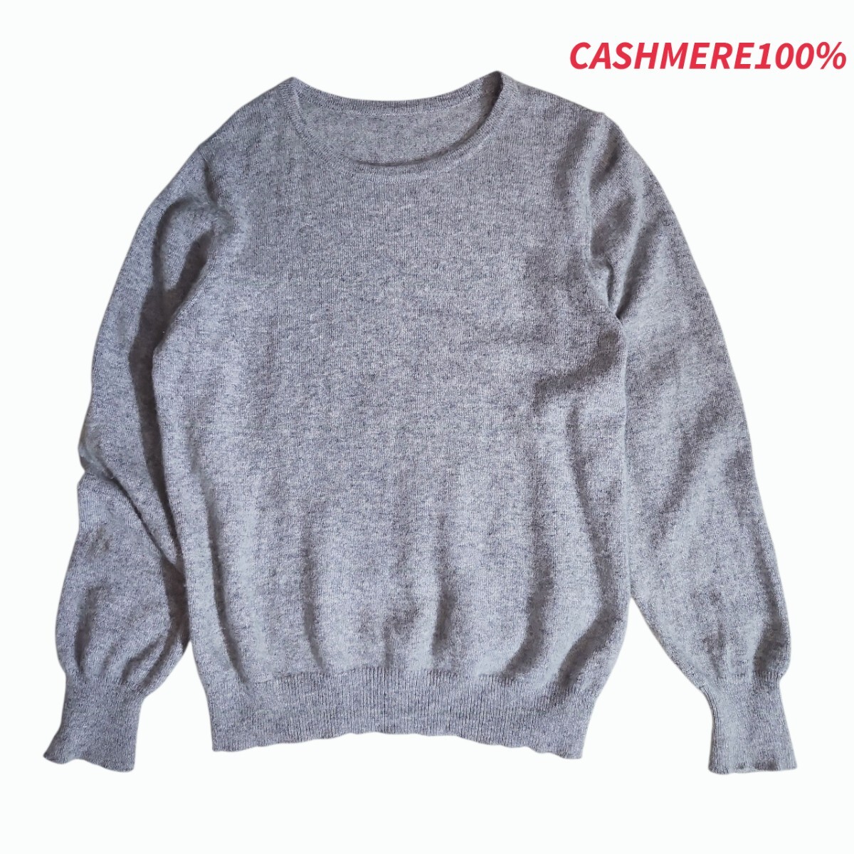- カシミア100% 丸首 ニット・セーター 表記サイズL グレー HERS PORT カシミヤ 69002