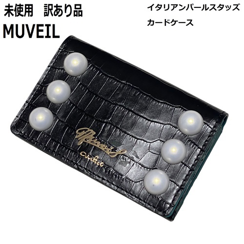 - 【未使用◆訳あり品】MUVEIL ミュベール クロコ型押し レザー カードケース 名刺入れ 黒 ブラック パールスタッズ
