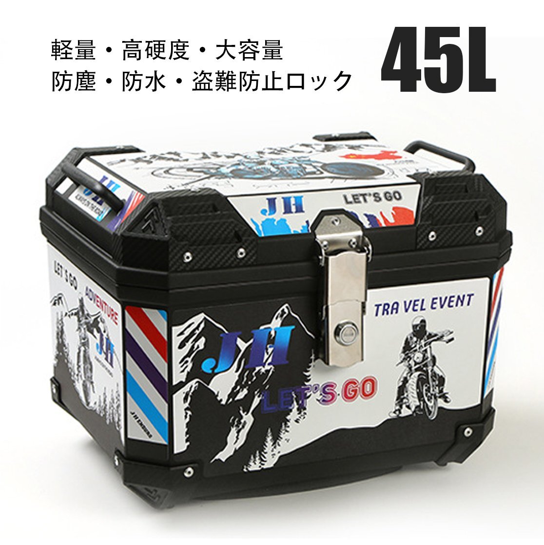 > リアボックス バイクボックス 大容量 45L アルミ製 防塵防水 盗難防止 キャリア 収納ケース 簡単脱着 裏地付き ステッカー 843