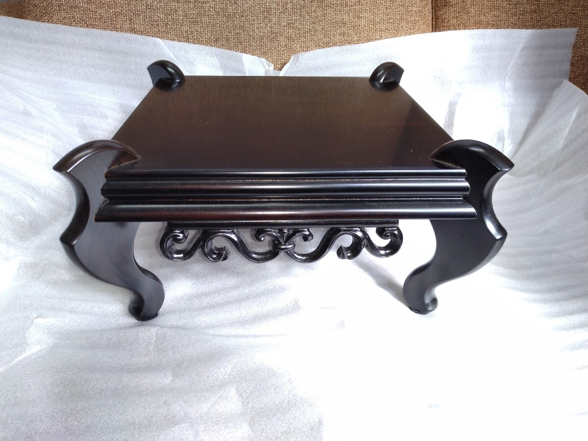 - K424 天然木 香炉台 花台 『小卓8号 黒檀』 飾台 盆栽台 猫足 透かし彫