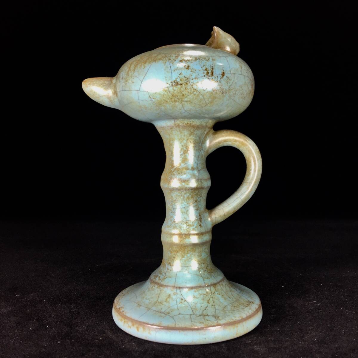 - 9+GV9762「東洋美術」 中国骨董 人間国宝 磁器製品【宋汝瓷灯台】 旧物 孤品 珍品 陶磁器 収蔵価値が高い