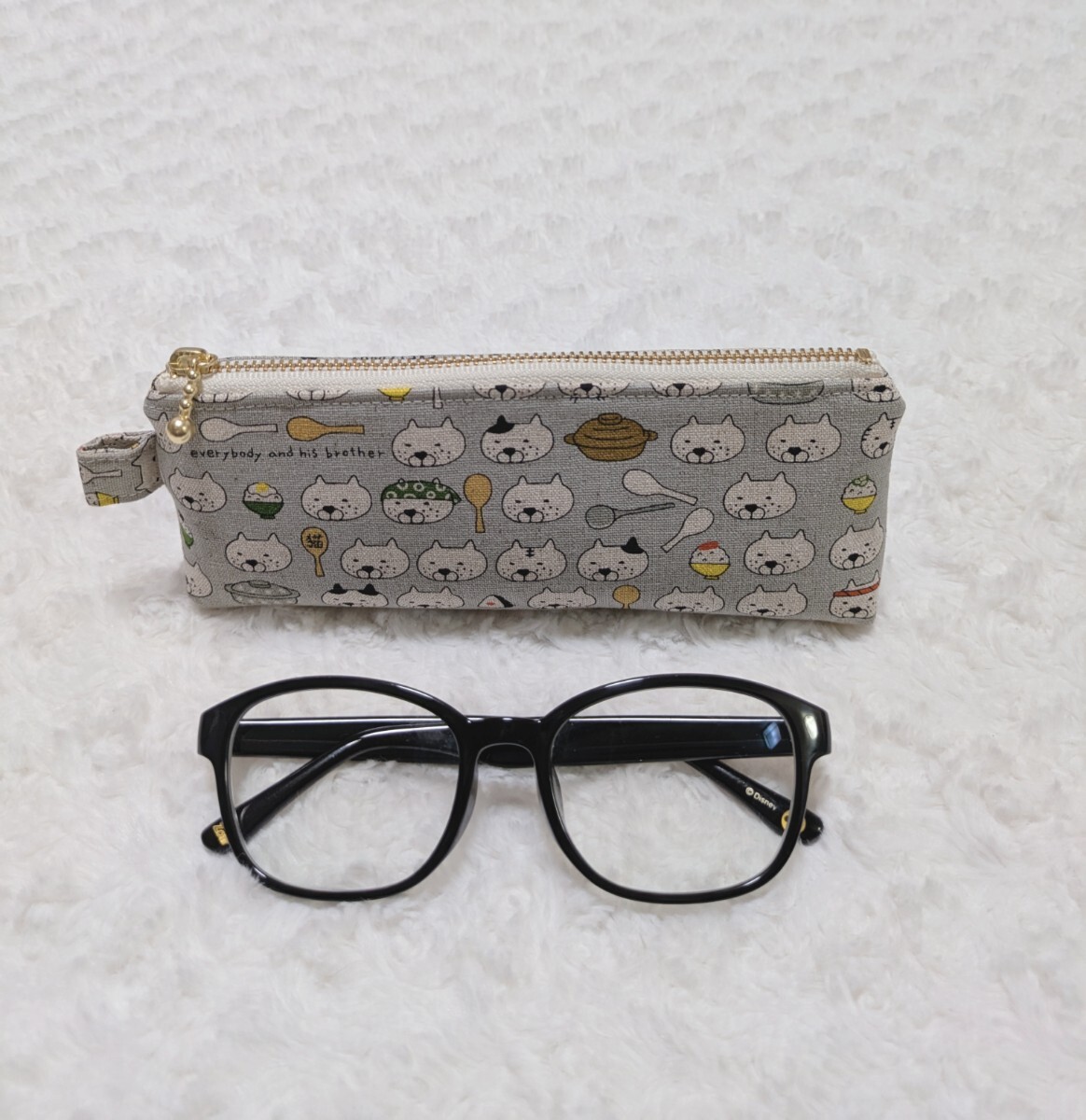 - 大人可愛い 猫にごはん柄のメガネケース ファスナータイプ くすみグレー ペンケース 再販