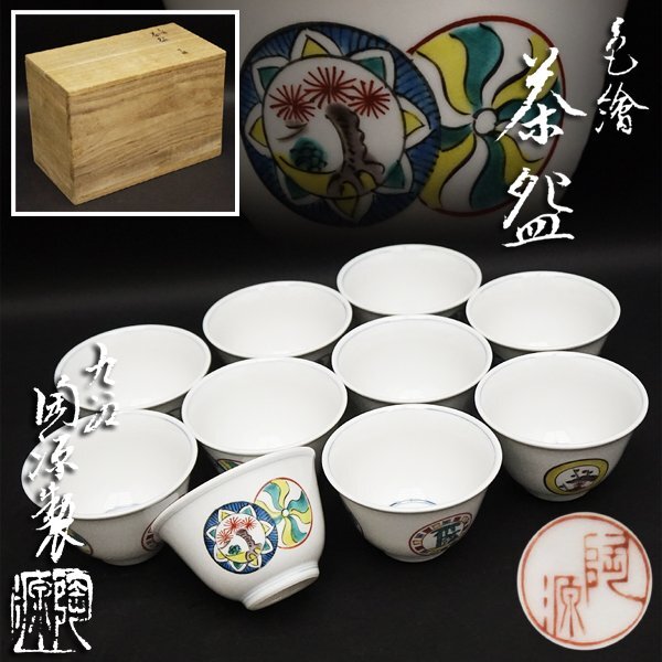 - 九谷焼 陶源造 陶源製 色絵 湯呑 茶碗 十客 杯 共箱 色絵磁器 茶道具 茶器 伝統工芸 工芸美術 古物 骨董 時代 煎茶器 古美術品