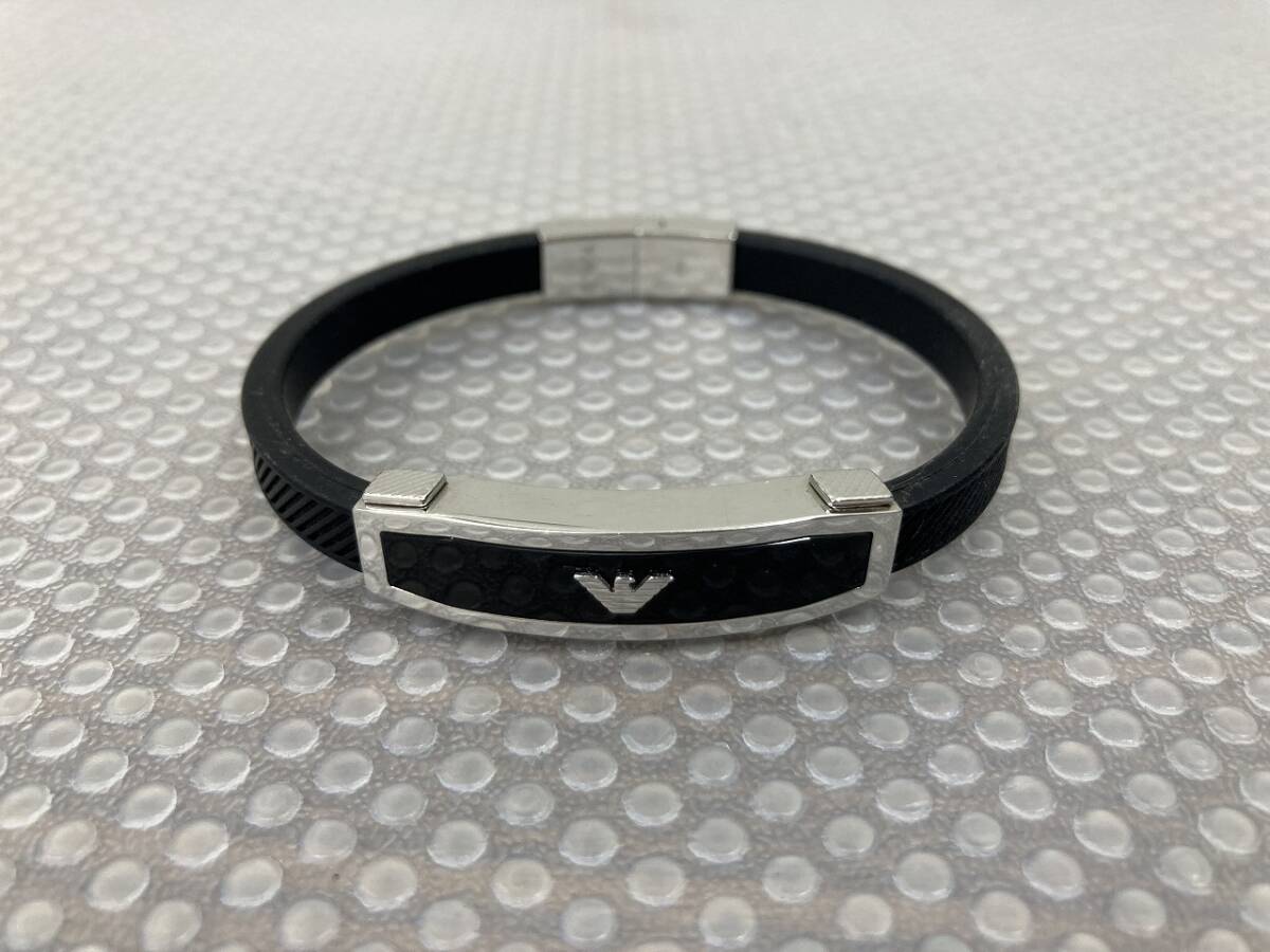 - ★在アク エンポリオアルマーニ/EMPORIO ARMANI STEEL ラバー ロゴ ブレスレット ブラック×シルバー色★