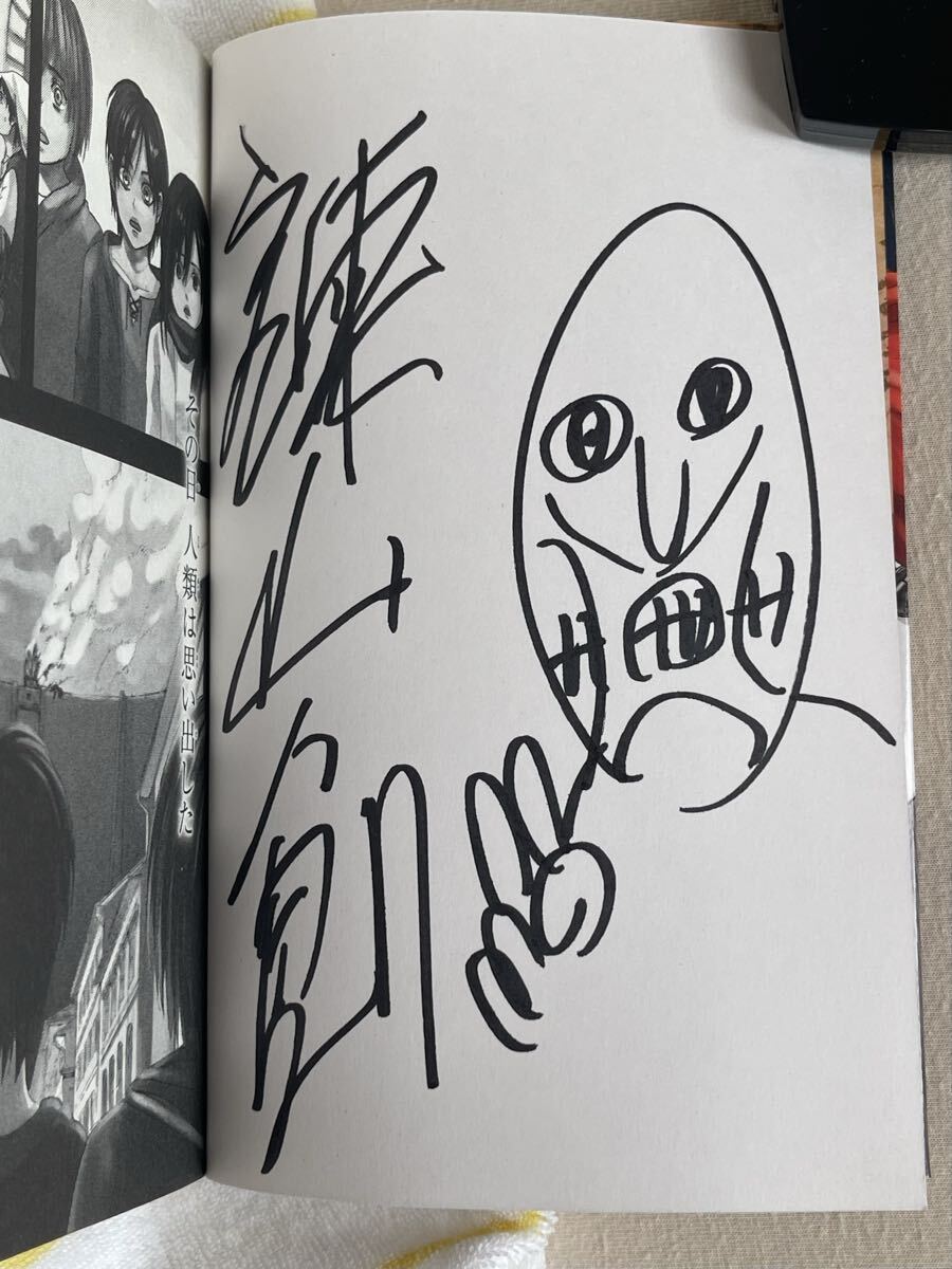 - 送料無料 超レア 進撃の巨人 諫山創 直筆サイン & イラスト入り コッミク 第一巻 少年マガジン