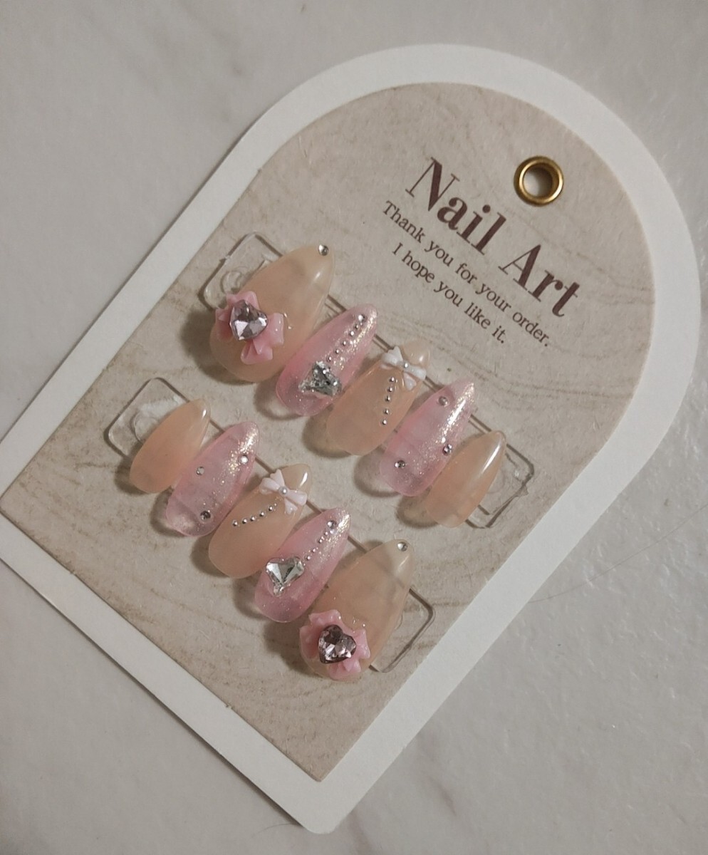 - ちゅるんネイルチップ ピンク ちゅるんネイル 韓国#ネイルチップ#ガーリー #スナ系 #韓国#マグネット#ワンホン#キラキラ