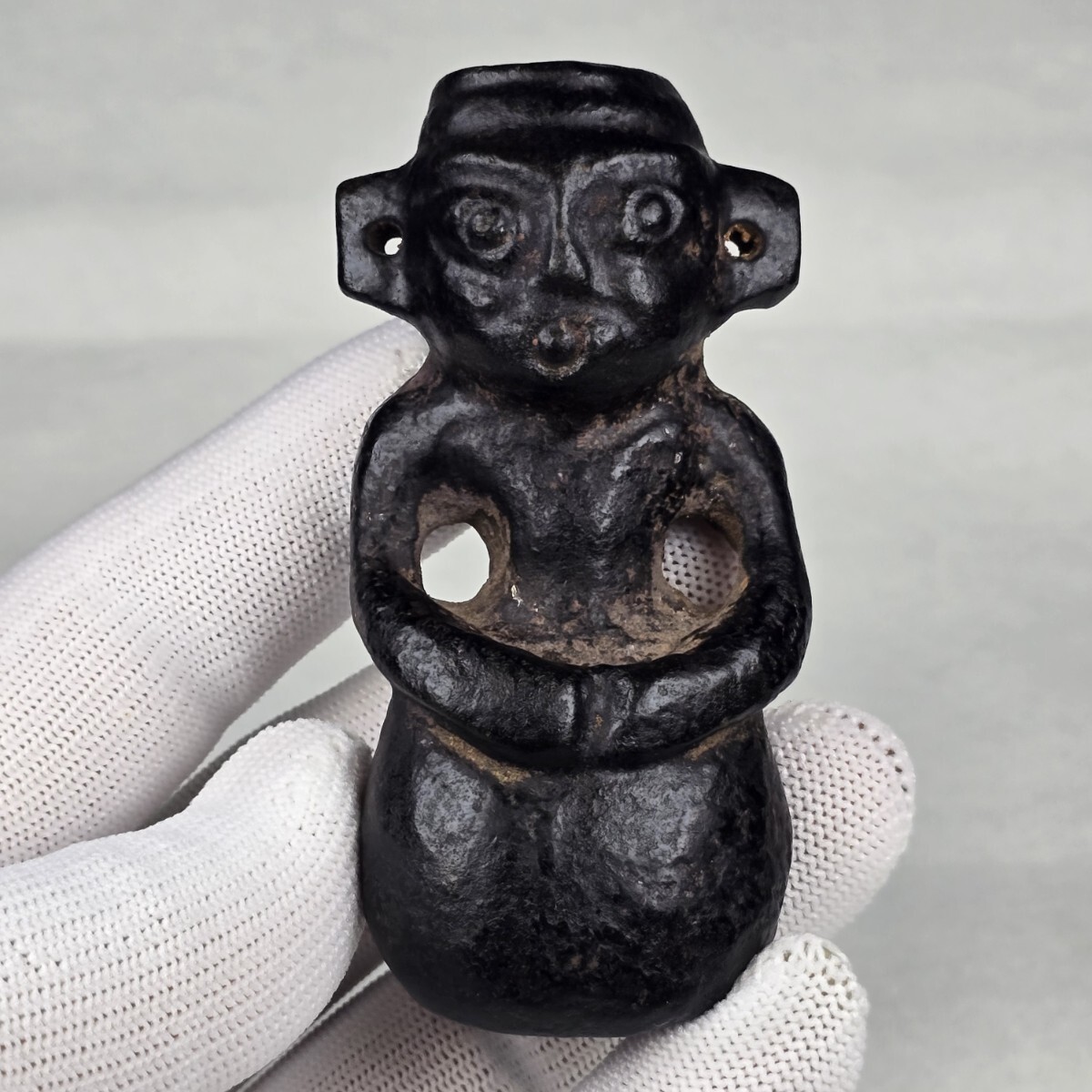 - 収集品 高古石器 高磁性墨玉 古蜀国 薩満人物紋 根付 置物 祭礼器 希少