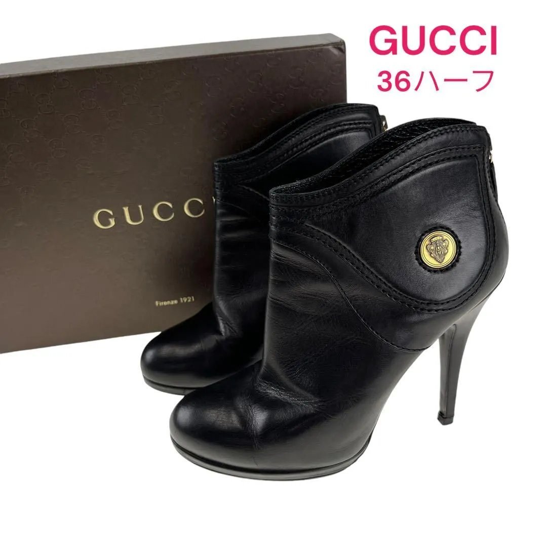 > ● GUCCI グッチ コインモチーフが素敵なショートブーツ 23.5ブーティー 黒 M4J322