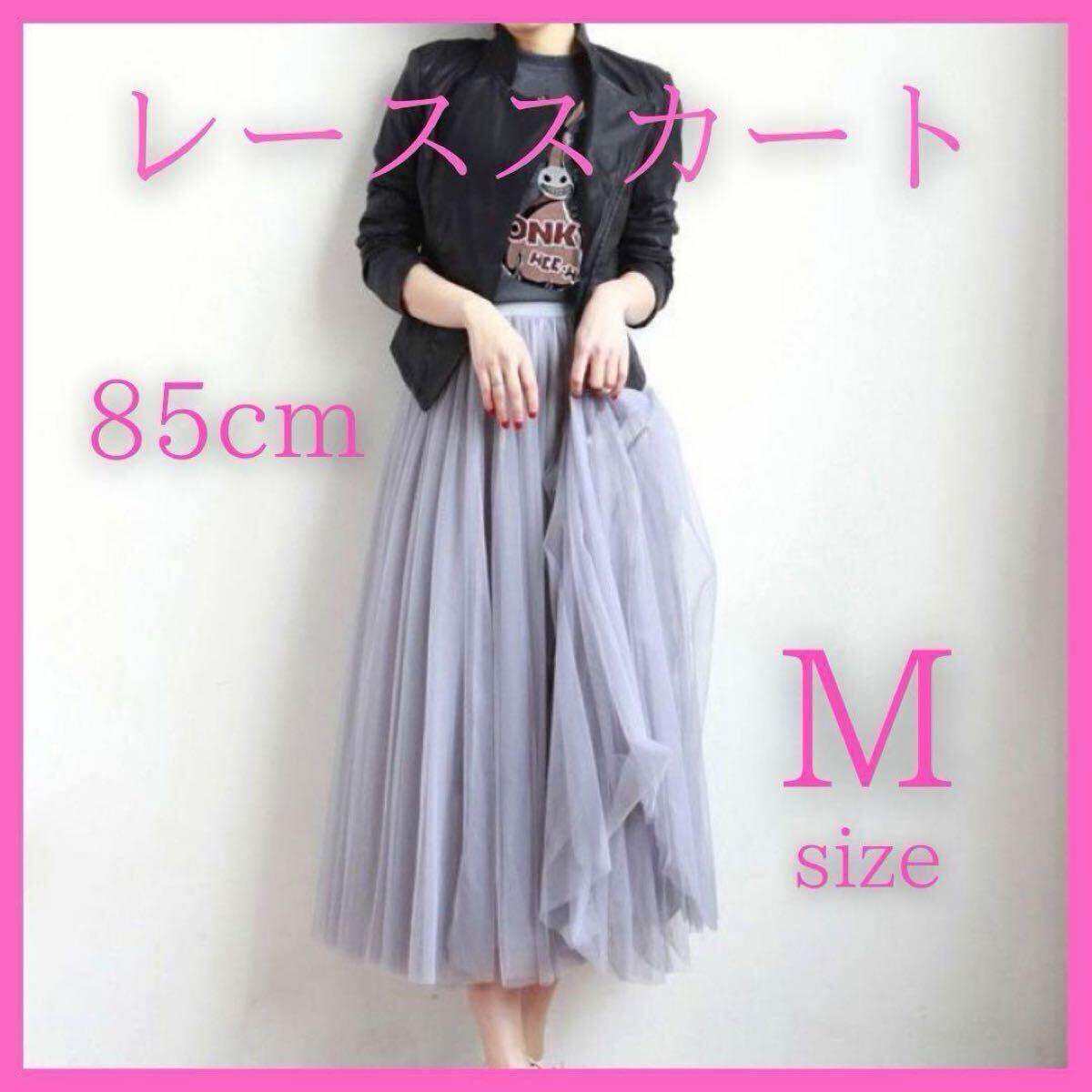 - M チュールスカート レース シフォン 可愛い ロング エレガント 大人 夏 秋