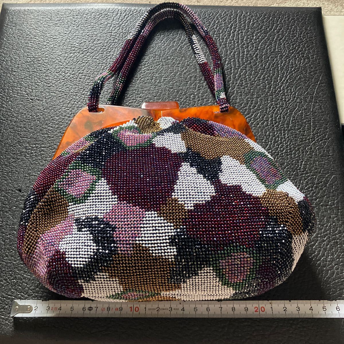 - 中古 昭和レトロ ビーズバッグ がま口ハンドバッグ ヴィンテージ お茶会 御茶席 礼装 お稽古 お出かけ 洋装 和装 バッグ