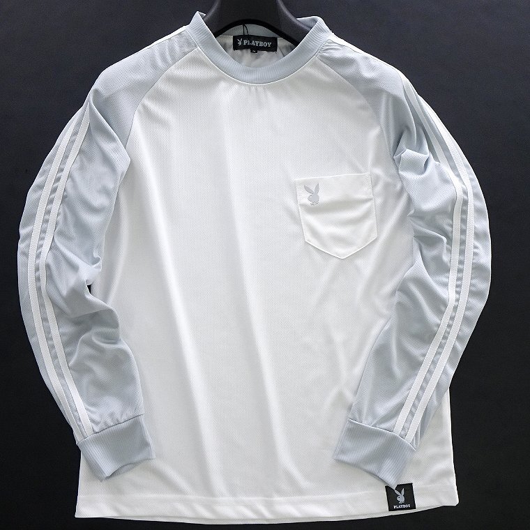 - 新品 プレイボーイ 25春夏 メッシュ ブリスター Tシャツ M 【PB1751029_197_M】 PLAYBOY 長袖 袖ライン カットソー ロンT ロングスリーブ