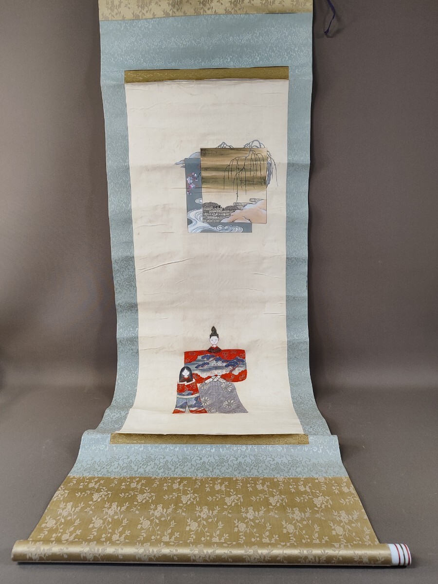 - k132 【作者不詳】立雛図 掛け軸 刺繍絵 絹本 箱無 古美術 骨董品 時代物 模写