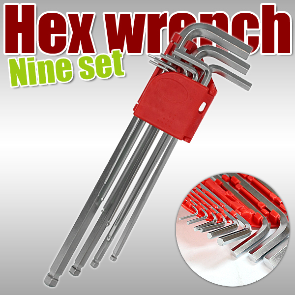 - 【6角レンチ】9本セット/赤ホルダー/六角レンチ/斜め使用可