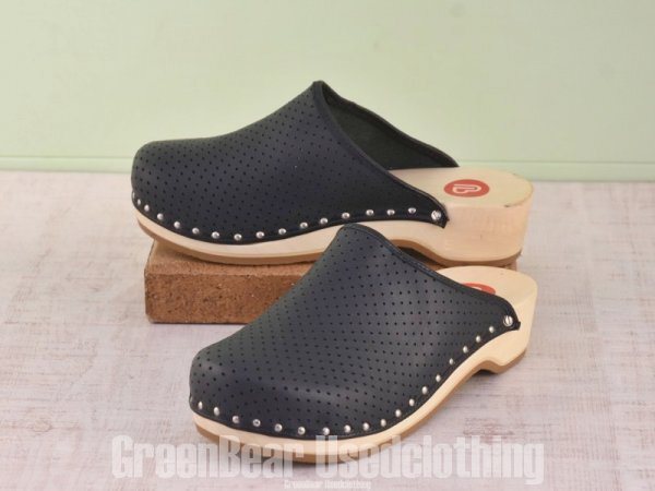 - D004 ビンテージ BERKEMANN サボ サンダル 紺 レディース 24cmくらい