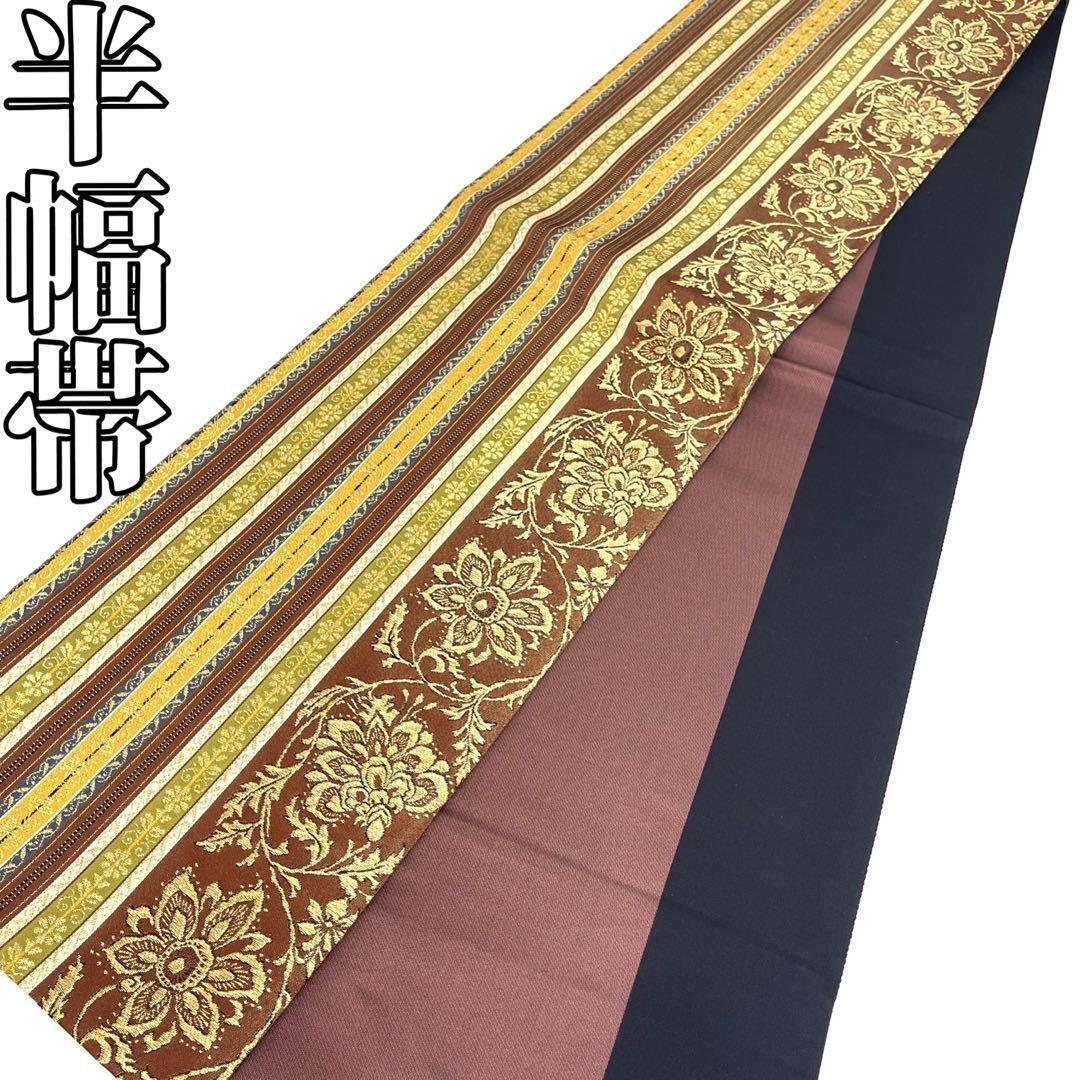 > 【着物と帯 時流】O25771◆正絹 半幅帯◆縦縞 唐花 美品