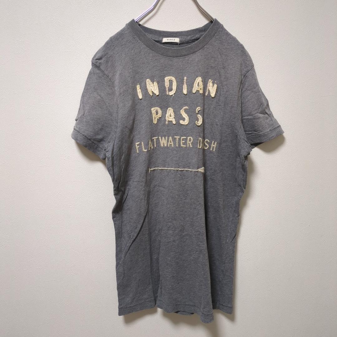 - MUSCLE(ONE)半袖Tシャツ*フロント英字プリント*アメカジ*綿*グレー