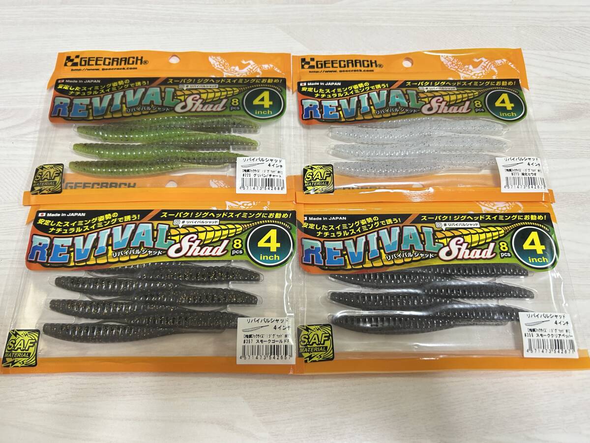 - ① ■■ 新品 ジークラック リバイバルシャッド 4インチ 4色パック 8本入り REVIVAL Shad GEECRACK ■■ W1.09