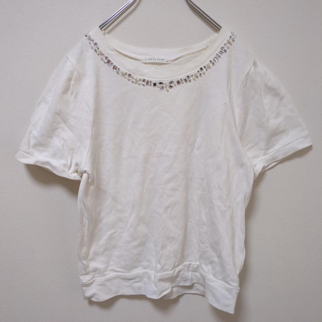 > ローリーズファーム(38)ビジュー付Tシャツ*半袖*Uネック*レディース*綿*白