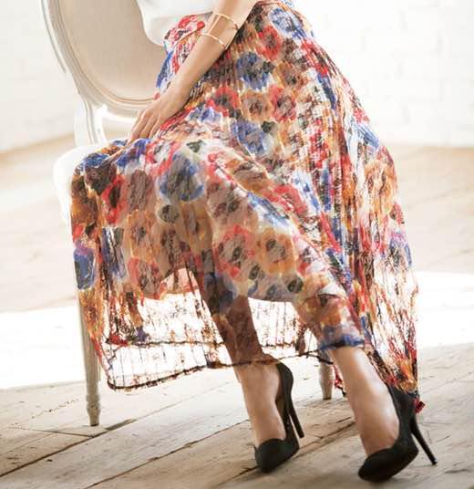 - 未使用 発表会 イベント 11号 L 花柄 シースル- ミモレ プリ-ツ スカ-ト (SKN8049)