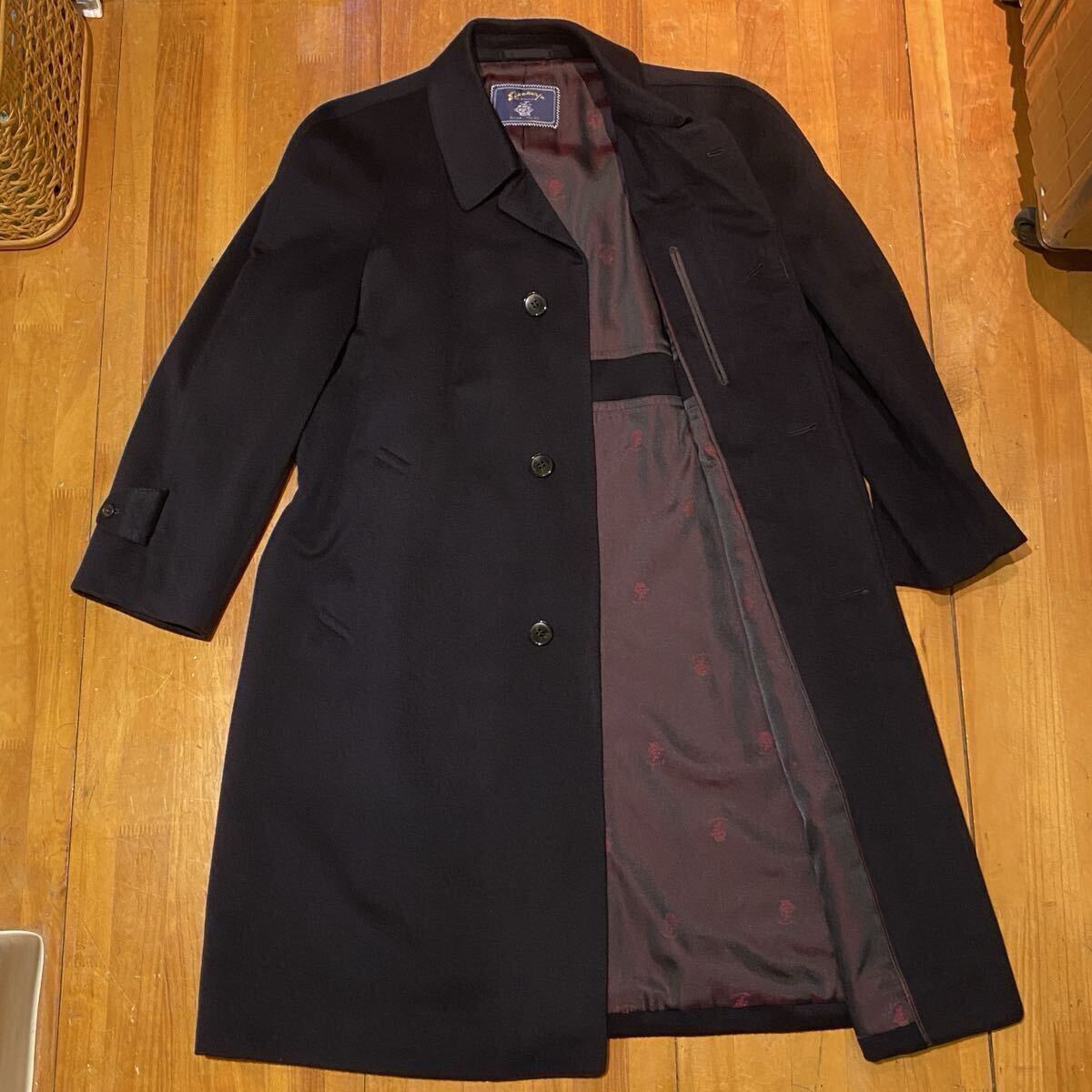 - 最高級 英国カシミヤ100% 銀座英國屋 比翼ステンカラーコート ダークネイビー