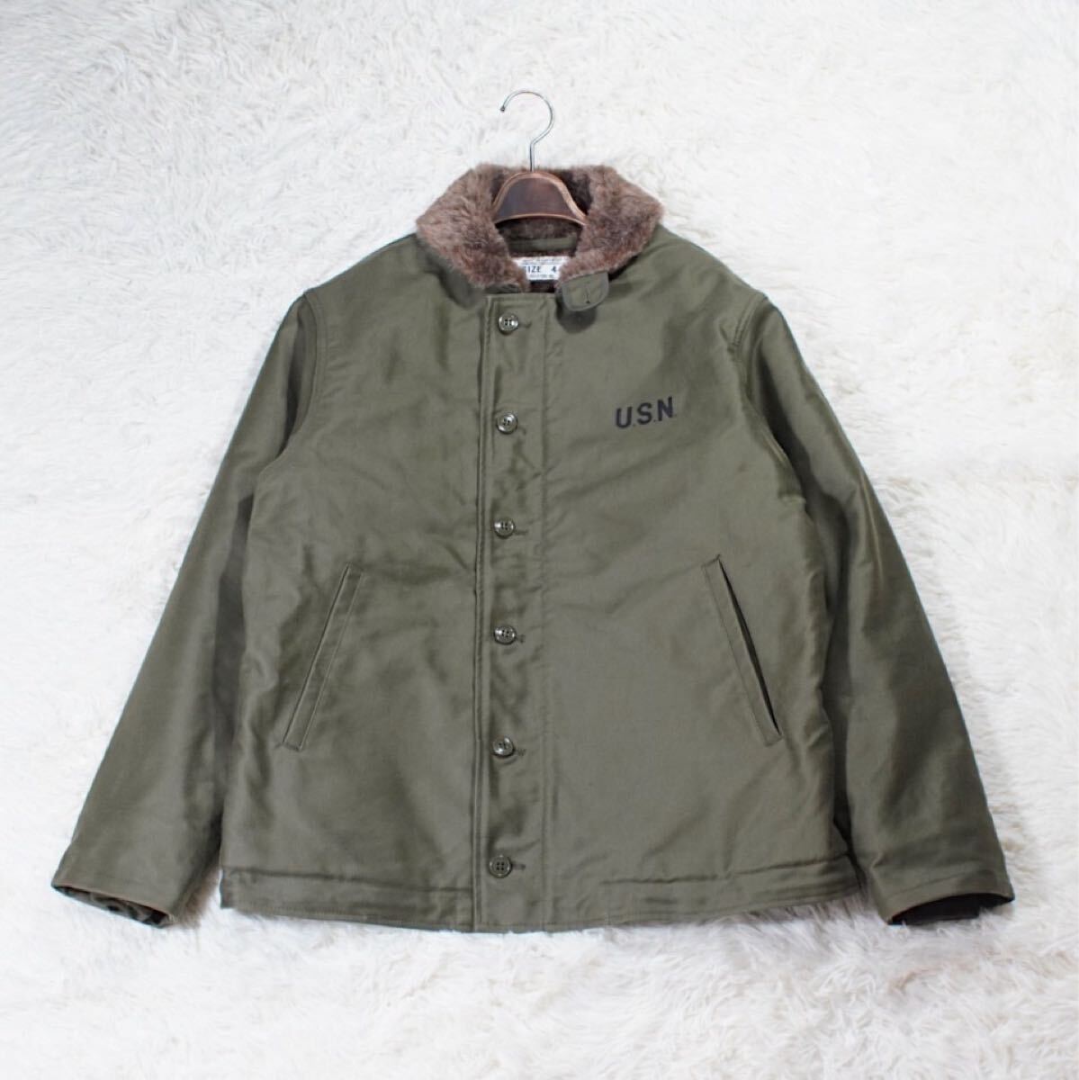 - 大人気 美品《HOUSTON》N-1(44)カーキ デッキジャケット USN ステンシル 日本製 大きいサイズ ヒューストン ボア ミリタリー