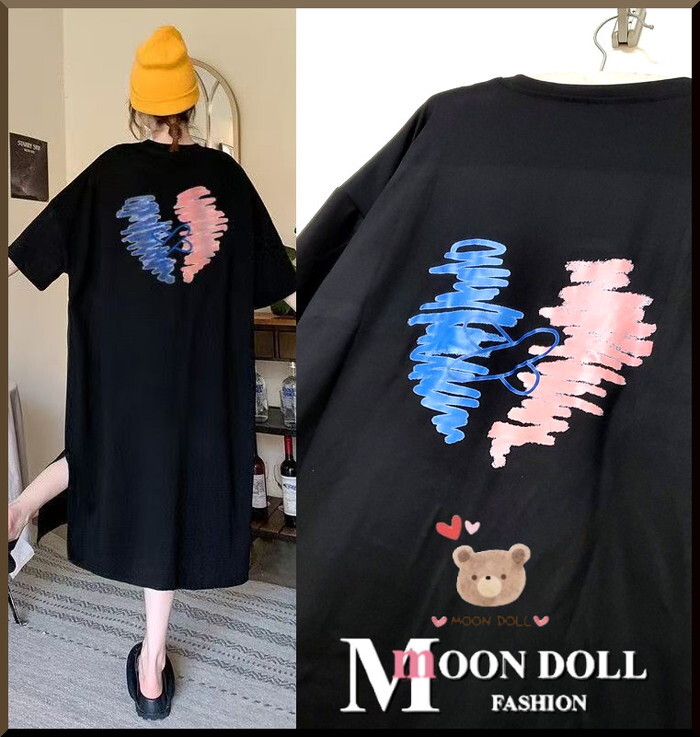 - ■~3L4L*ハートプリントTワンピース/ゆったりシルエットオーバーサイズ