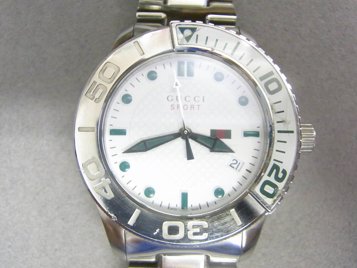 - 【中古品:状態「悪い」】グッチ・スポーツ腕時計 クォーツ 162.2 日付カレンダー アナログ表示 三針