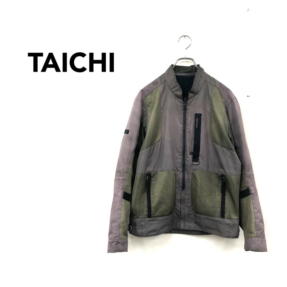 - 2K2803-G-N◆ TAICHI タイチ バイカージャケット ジップアップ メッシュ スタンドネック ◆ sizeM カーキ グレー ナイロン ポリエステル