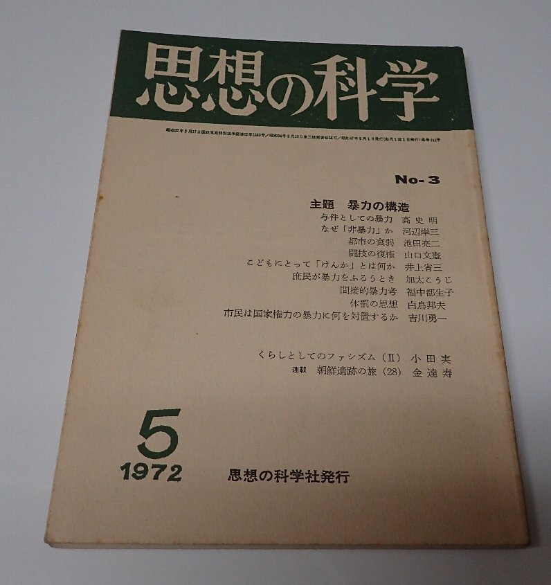 ●「思想の科学 NO.3 1972年5月 暴力の構造」 思想の科学社