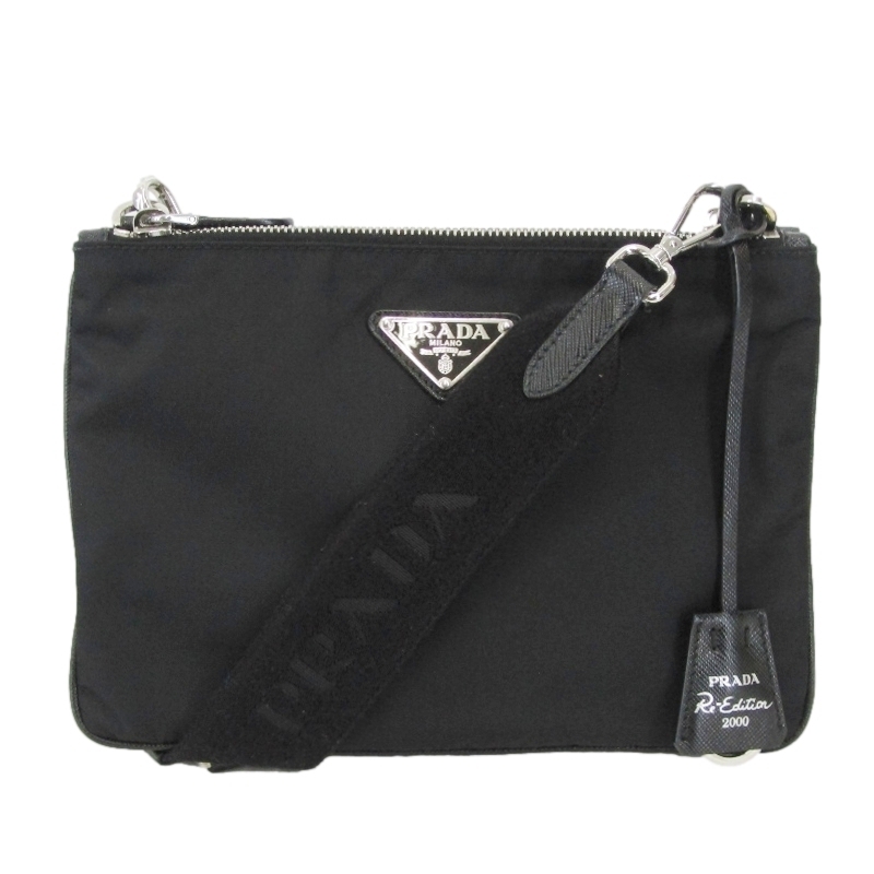 - 美品 PRADA プラダ ショルダーバッグ Re Edition 2000 1BH046 TESSUTO/SAFFIANO ポーチ 鑑定書付き NERO 24005339