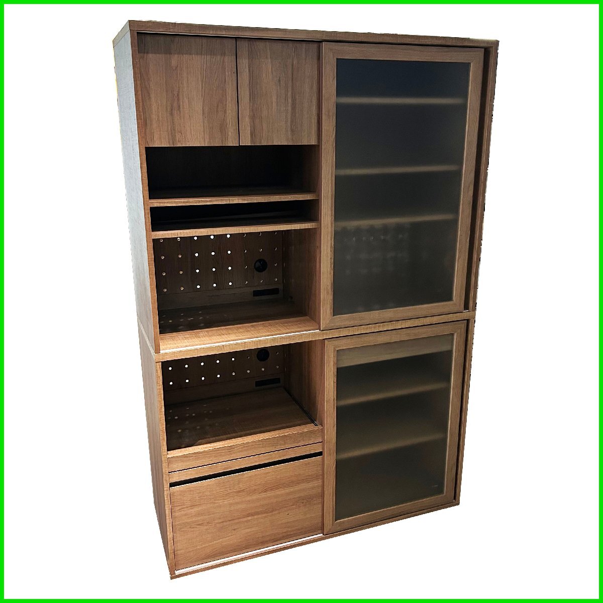 - 札幌市内送料無料●moca campany●CELNA キッチンボード 食器棚 ブラウン AC付き 幅120cm×奥行48cm×高さ180.5cm 引き戸 中古