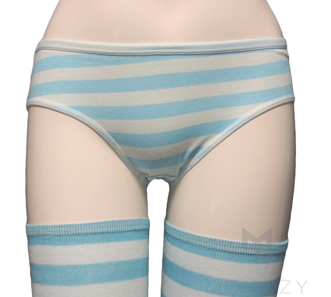 - しましま セット (縞 パンツ + ニーハイ) コスチューム用小物 水色 レディース フリーサイズ