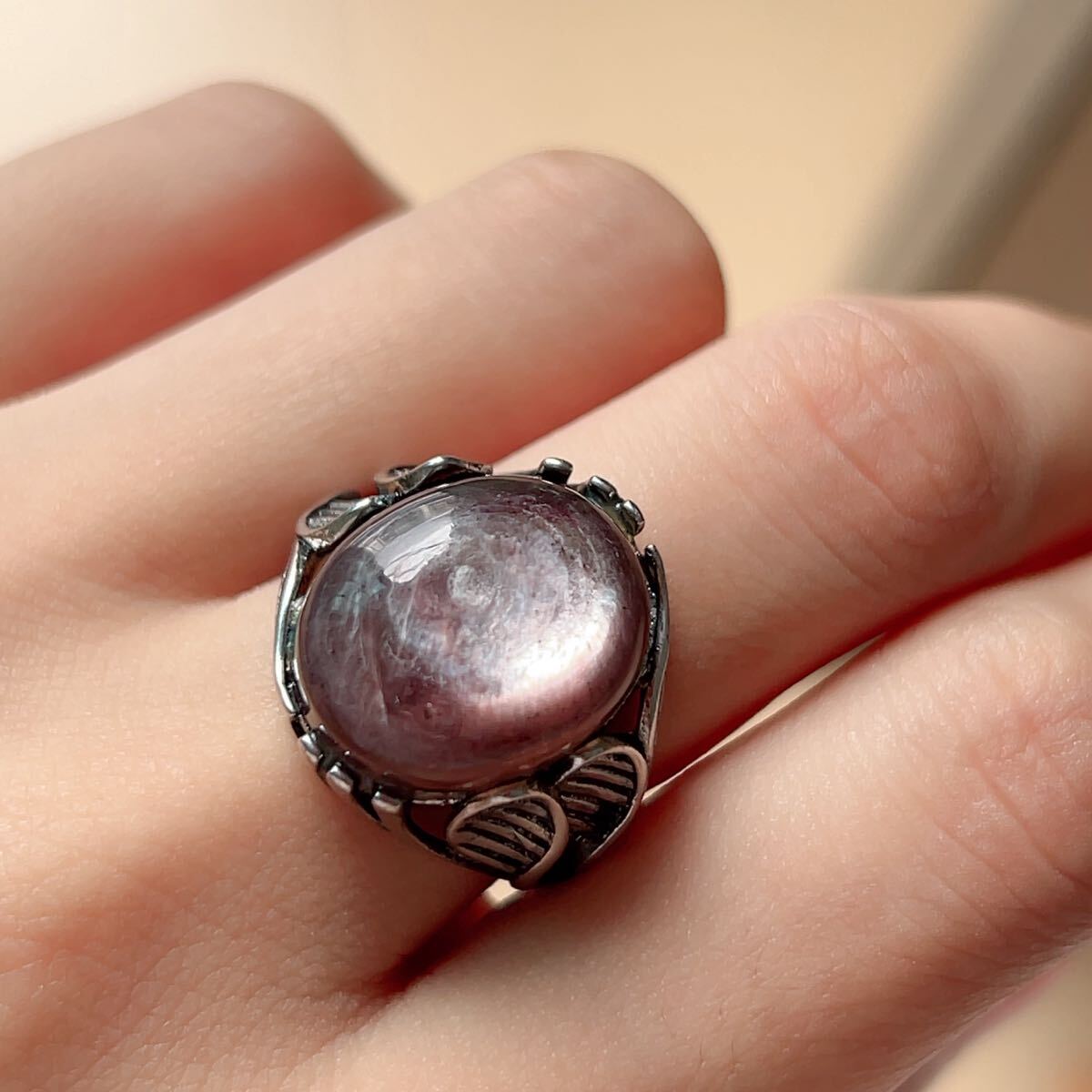 > ◇パープルマイカ◇指輪◇リング◇ 男女兼用◇フリーサイズ◇天然石◇パワーストーン◇巾着袋つき◇プレゼントにも038R92914