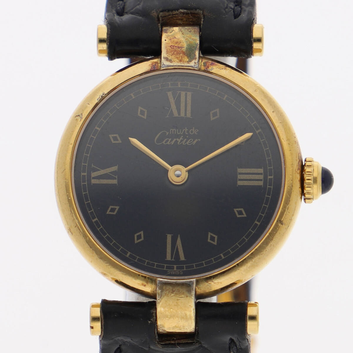 > CARTIER カルティエ 590004 マストヴェルメイユ ブラックダイヤル SV925/レザー クオーツ レディース【135456】