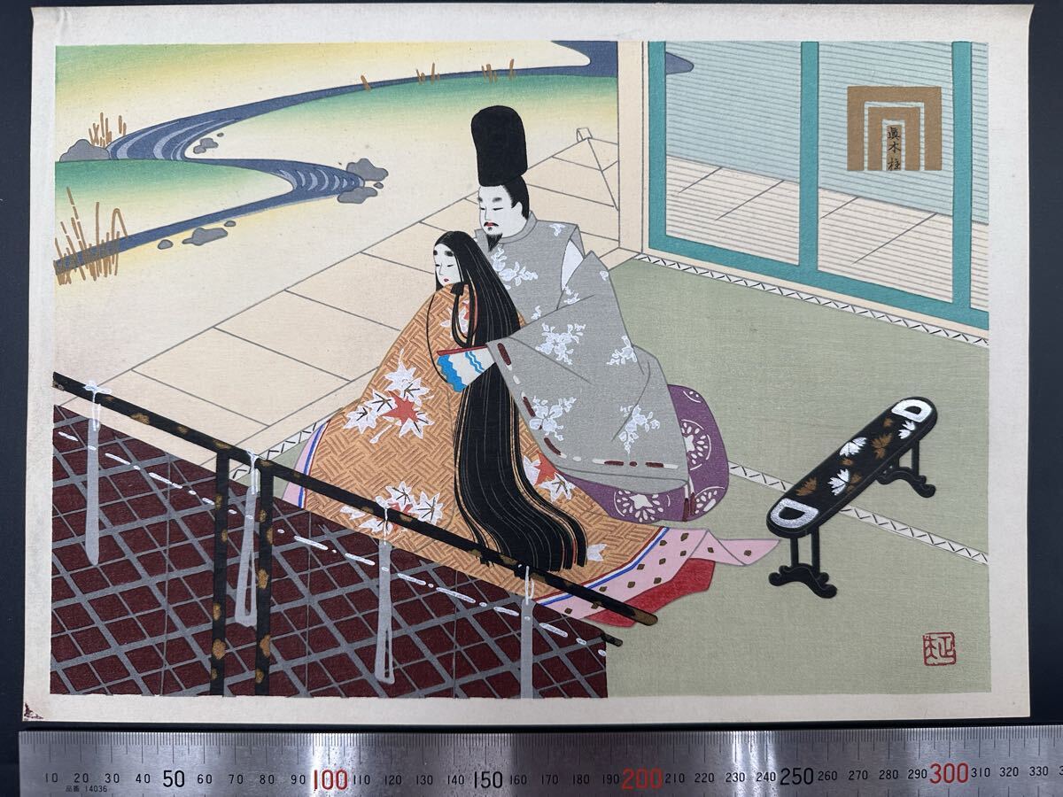 - 【真作】大正期 浮世絵木版画 海老名正夫「源氏物語 真木柱」美人画 大判 錦絵 保存良い