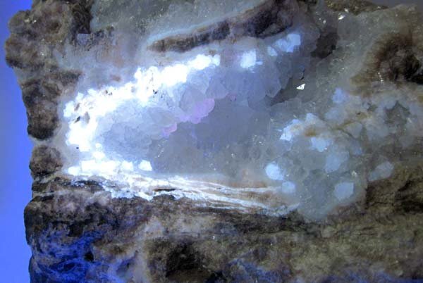 - 日本の鉱物 新潟県間瀬の方解石/紫外線長波で青白色、淡ピンク色、オレンジ色などに蛍光 約694g