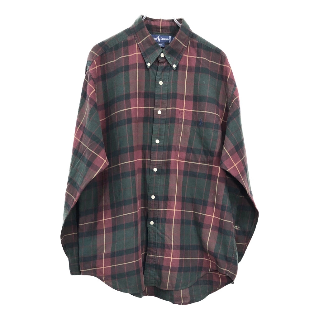 > 90年代 RALPH LAUREN ラルフローレン BLAIRE ボタンダウン 長袖シャツ チェック レッド(メンズ XL)中古 古着 V3044