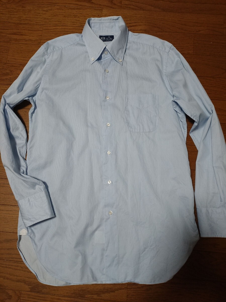 - 人吉シャツ HITOYOSHI ボタンダウン ストライプ シャツ 長袖シャツ ワイシャツ サイズ40/84 水色 マチ付き 日本製
