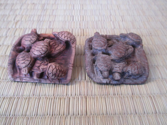 - 《和》 根付け2点セット 箕に小亀7匹 細密 木彫 彫刻 2個32g