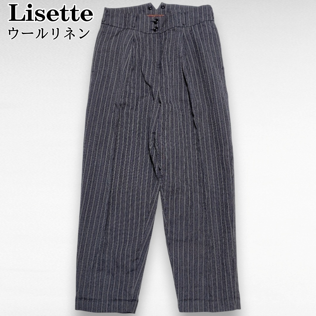 - 【上質ウールリネン】Lisette リゼッタ ハイウエスト ボタンフライパンツ レディース38 ストライプ 250824-10