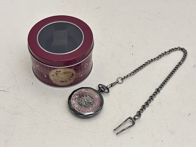 > T369-N43-147 SEGA セガ ミッキー&ミニー プレミアムラインストーン付カットクリスタル ビッグフェイス クォーツ 懐中時計 現状品3