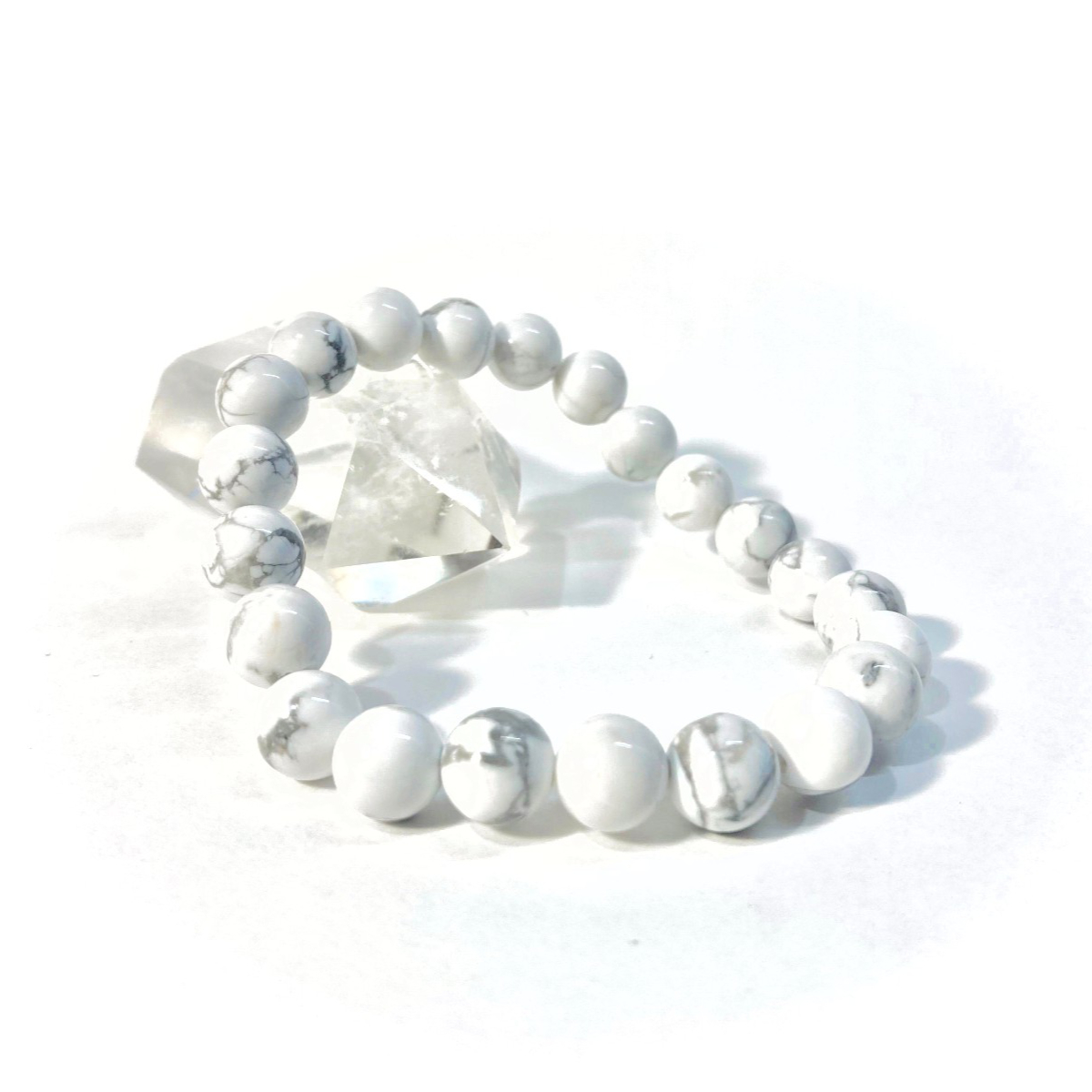 - シンプル ハウライト パワーストーン ブレスレット 天然石ブレス 8mm /開運 浄化 人間関係 健康 効果 レディース 通販 白