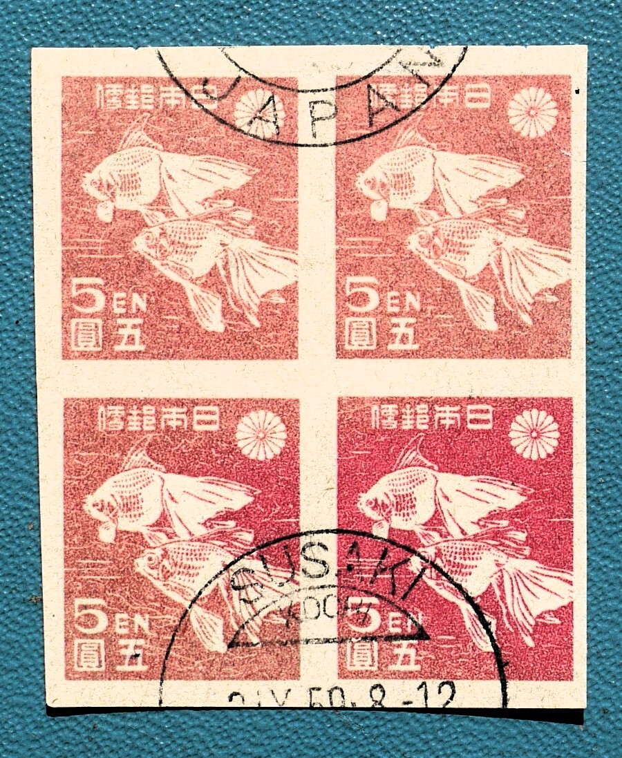 > 【戦後初期普通切手!!】(50) 第1次新昭和 5円金魚田型に欧三印・SUSAKI/KOCHI/59.X.31 使用済 型価5千円