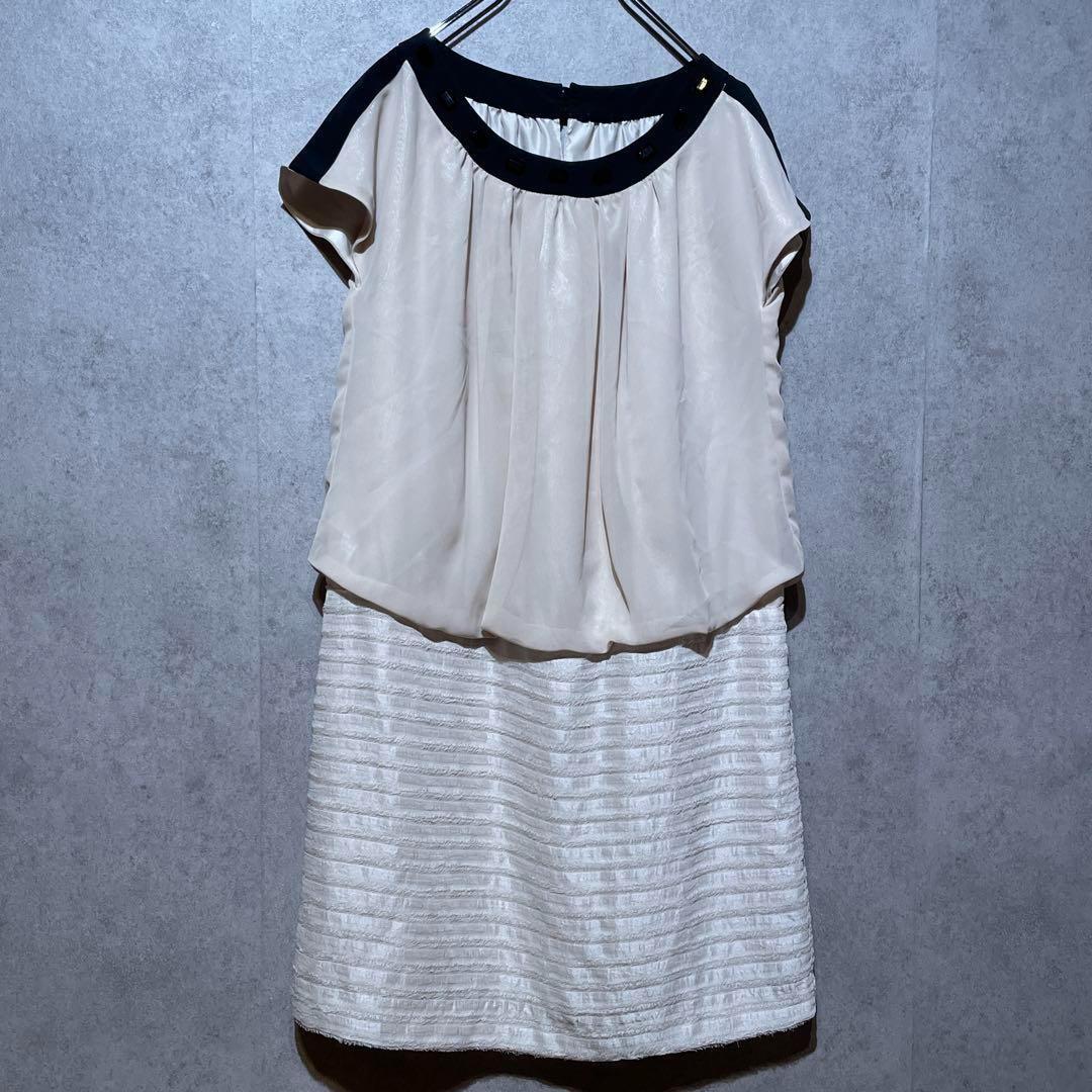 - イノウェーブ(M)ミニワンピース*フレンチスリーブ*切り替え*ビジュー*