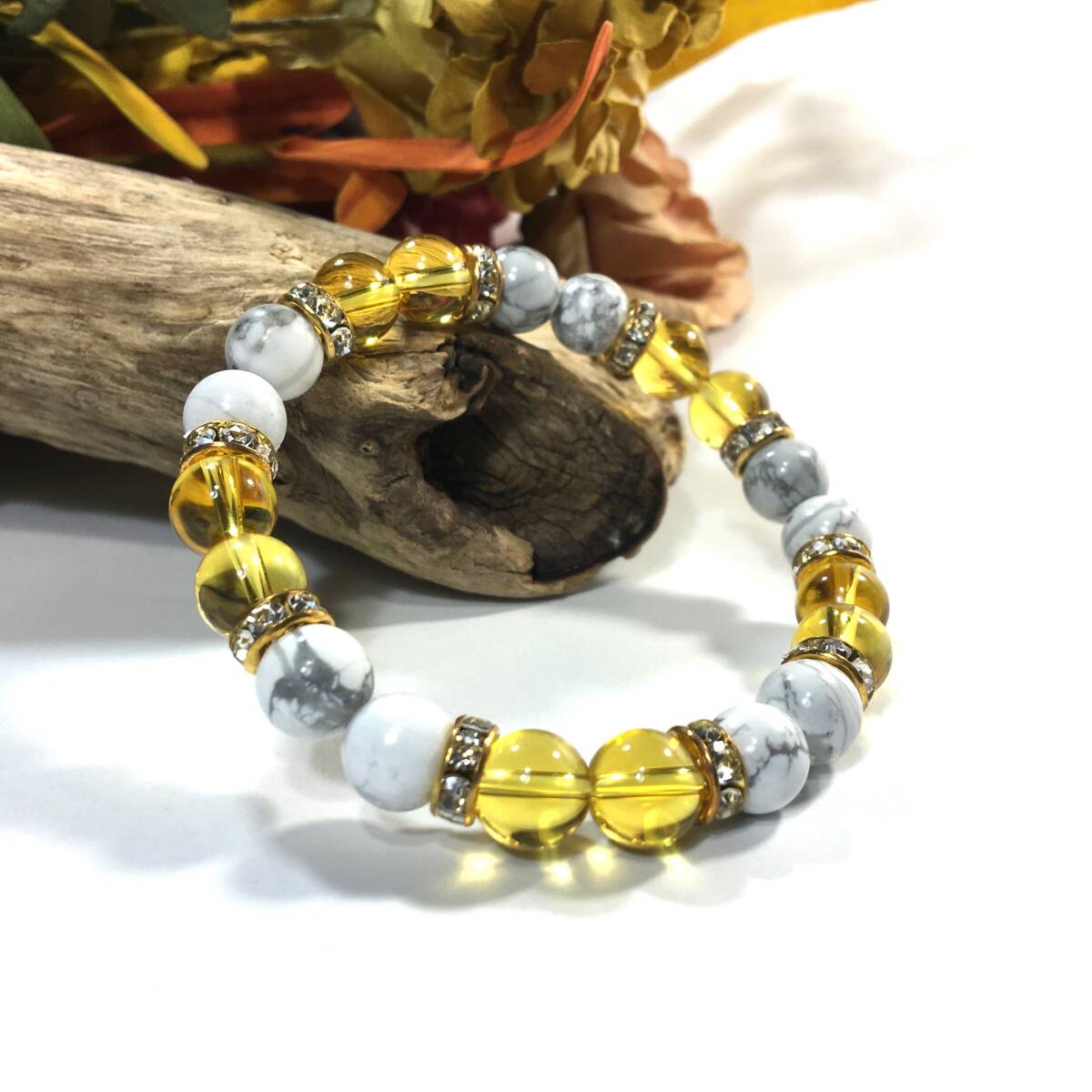 - ハウライト&シトリン パワーストーン ブレスレット 天然石ブレス ゴールド 8mm/開運 浄化 幸運 仕事運 金運 効果 レディース 通販