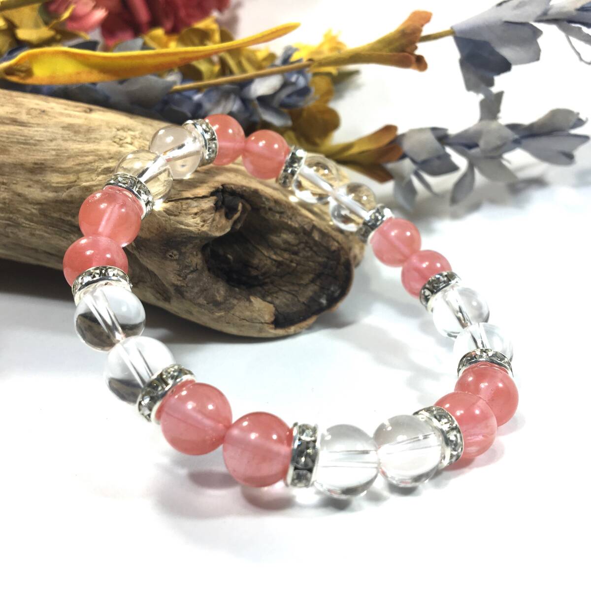 - チェリークォーツ&水晶 パワーストーン ブレスレット 天然石ブレス シルバー 8mm /開運 浄化 4月 誕生石 クリスタル レディース