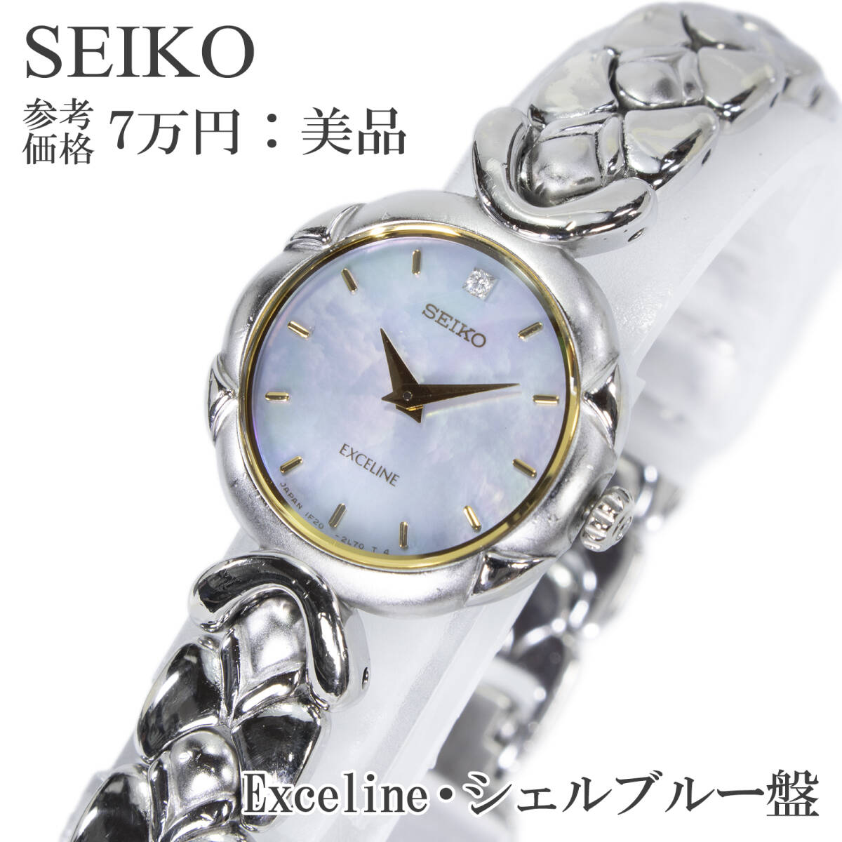 > 送料無料 セイコー 腕時計 レディース エクセリーヌ 1F20-1C40 水色 シェルブルー シルバー925 ダイヤ ヴィンテージ 小さめ ロゴ 綺麗 Q169