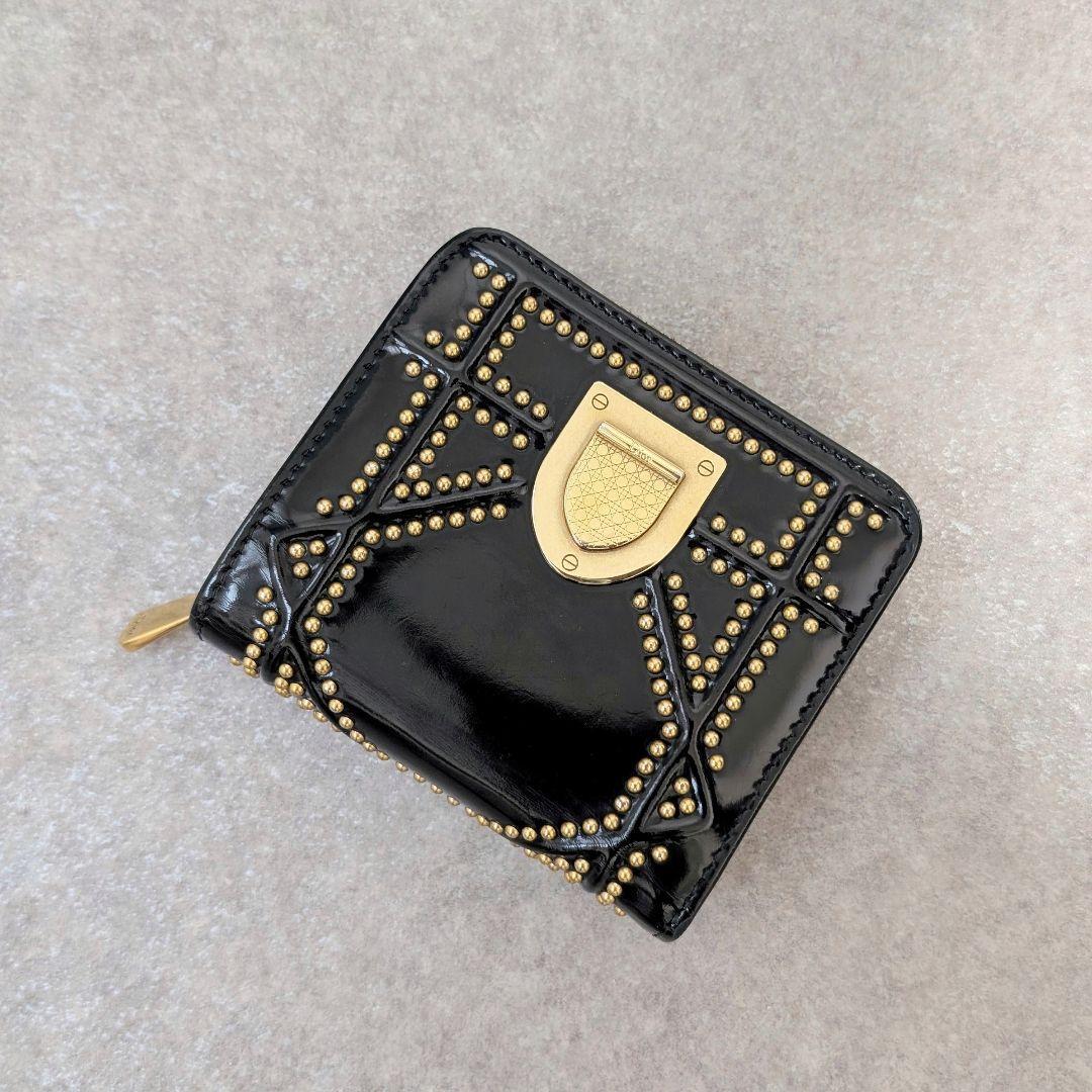 - 【Christian Dior クリスチャンディオール】ディオラマ スタッズ パテントレザー 財布 ブラック 入手困難 希少