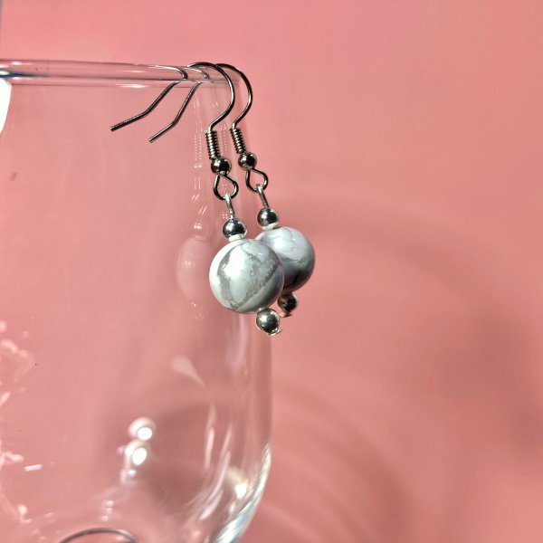 - ハウライト ピアス 一粒フックピアス 10mm (シルバー) イヤリング 樹脂フック変更可 樹脂ピアス シンプル パワーストーン 天然石